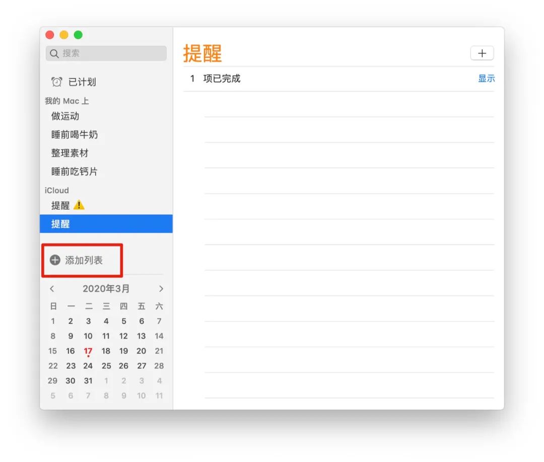 也可点击窗口边栏「添加列表」选择新建列表和重命名。