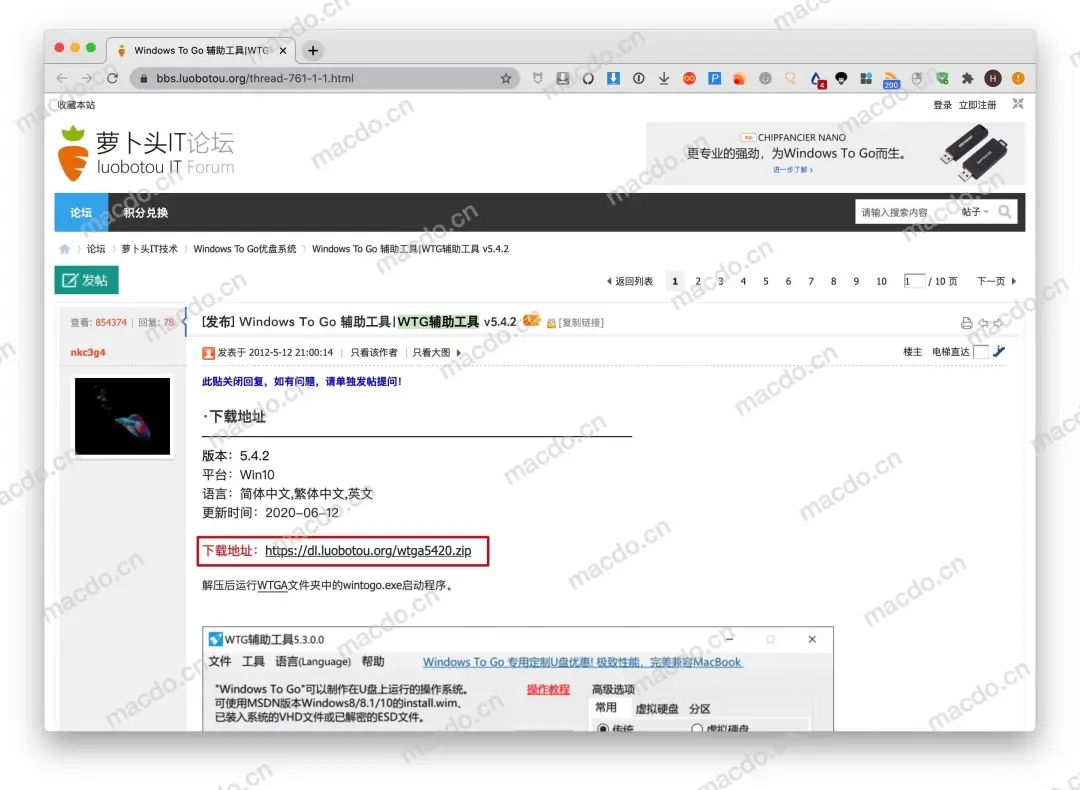 3. 进入网站「萝卜头IT论坛」下载最新 WTG 辅助工具