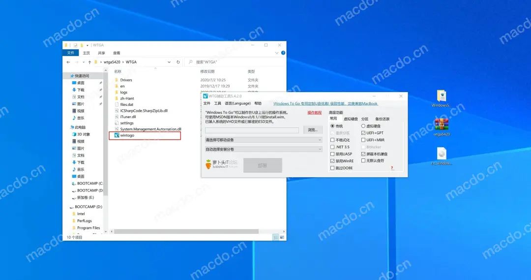 3. 进入 wtga5420 文件夹中的目录 WTGA,双击 wintogo 运行辅助工具
