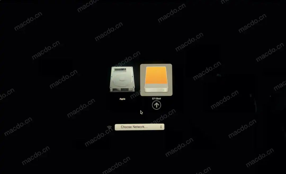 2. 安装完成,重启电脑,按住 option 键选择「EFI Boot」并回车进入