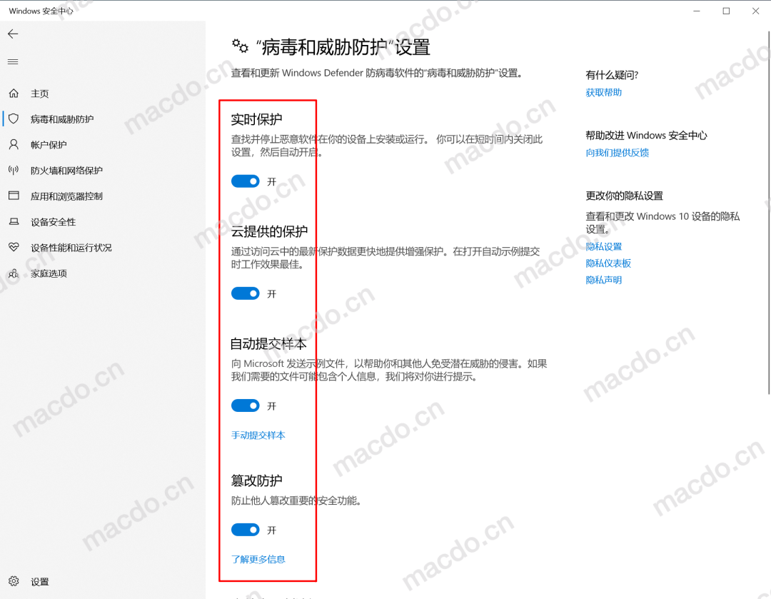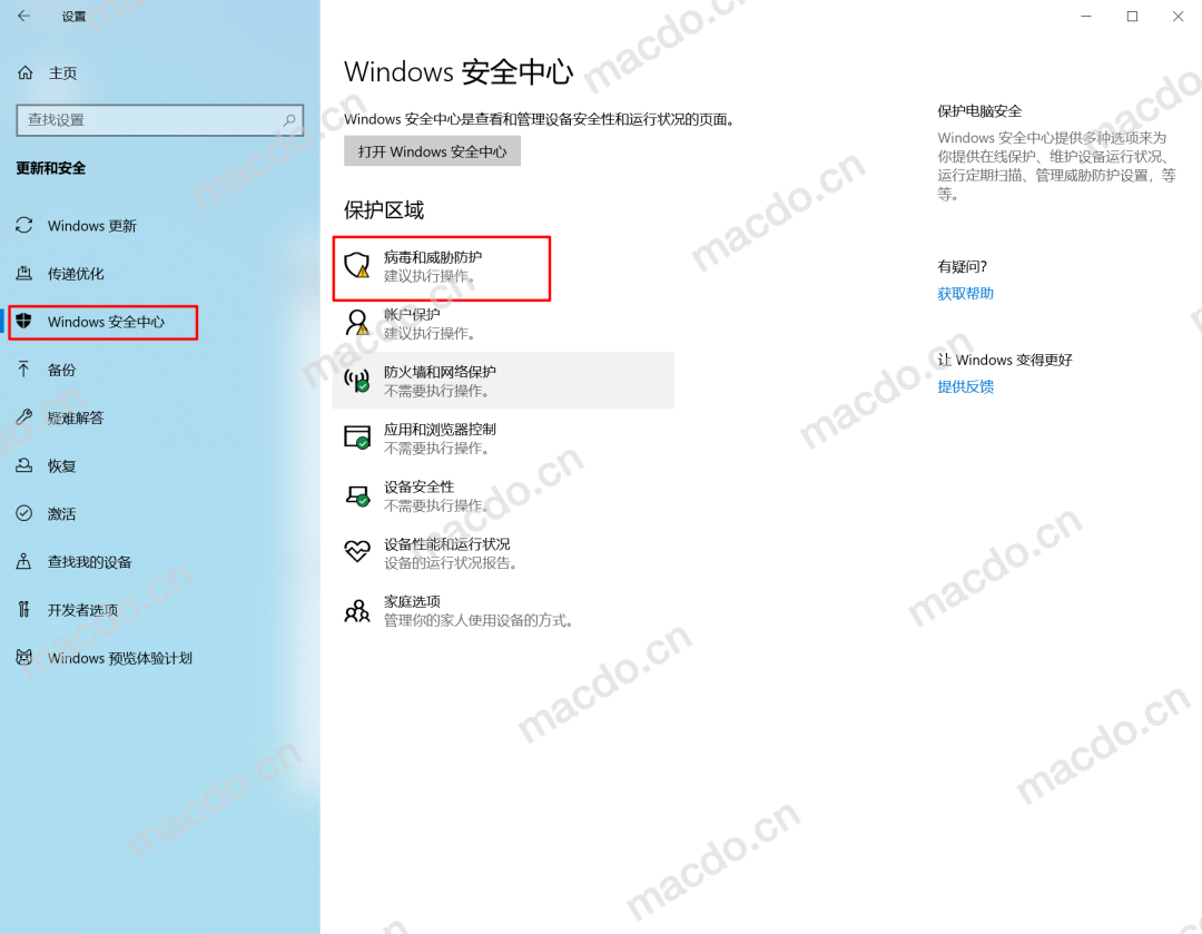 1. 打开「设置」-「更新和安全」-「Windows 安全中心」-「病毒和威胁防护」