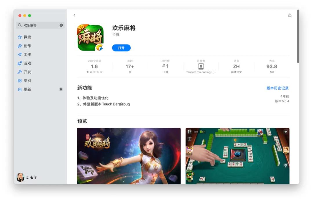 只需要从 Mac 的 App Store 内下载「欢乐麻将」就可以开胡了
