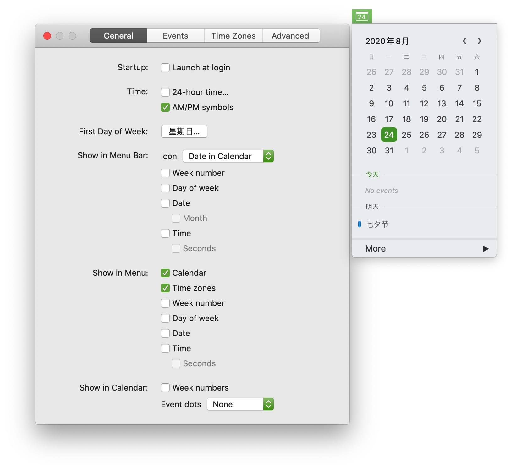 Dato 是一款 Mac 菜单栏日历应用。默认情况下,它看起来和系统时间完全一样,但是单击它时,会显示一个日历,日历事件,各个时区的当前时间等等。日历和事件是只读的。当前不支持添加/编辑事件。作者还没有计划增加对中国农历的支持。