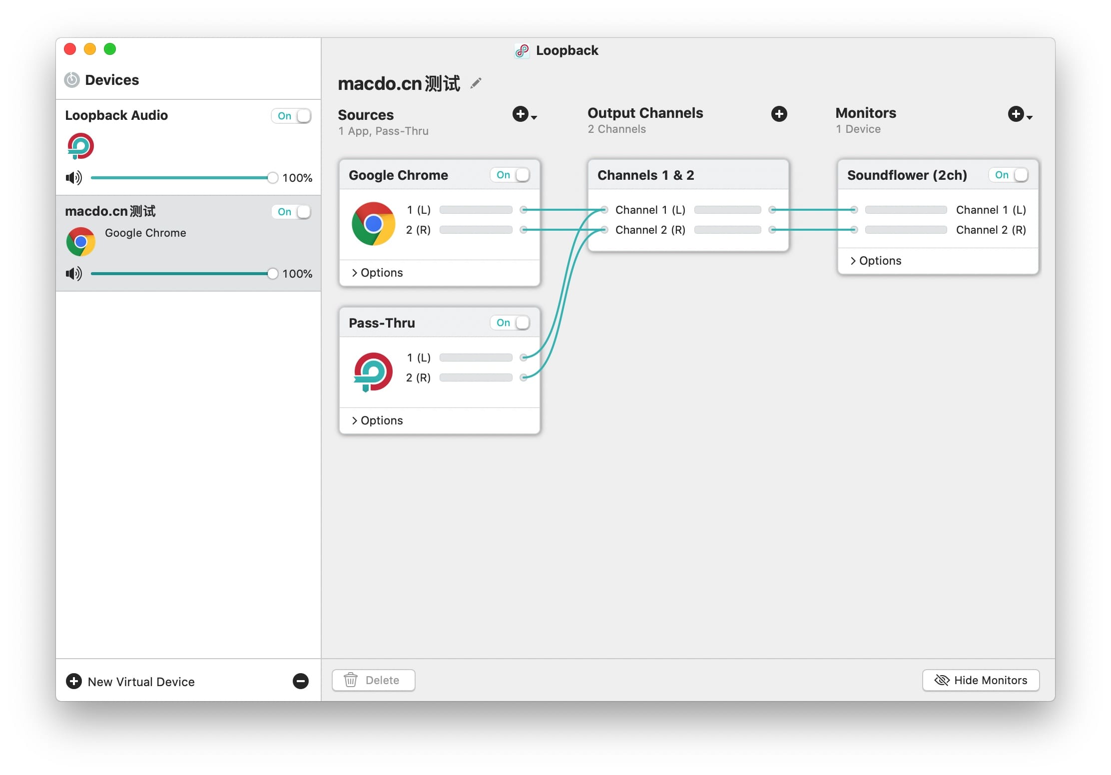 Loopback 是一款Mac平台上的可以创建虚拟音频设备的工具,从应用程序和音频的输入的设备创建虚拟音频设备的声音,然后将其发送给音频处理应用程序。Loopback 会给了你一个高端录音工作室。