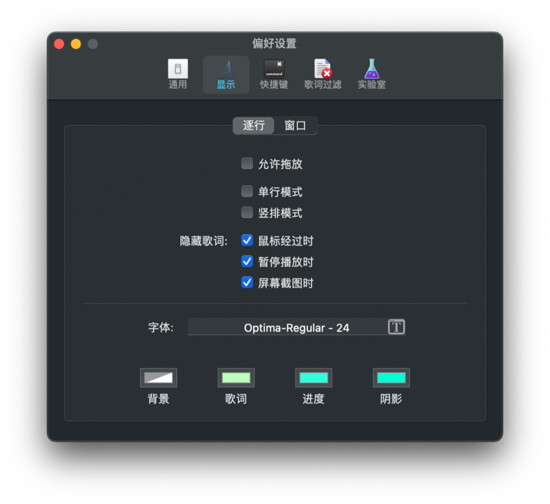 另外,在软件的偏好设置中,我们还能对歌词显示的模式进行更个性化的设置。