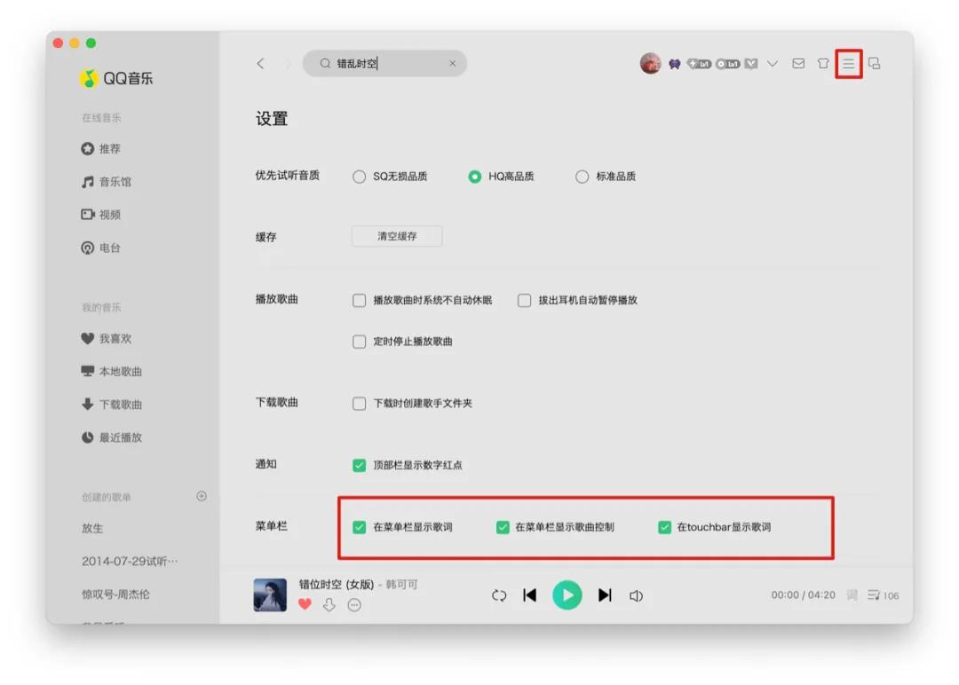 QQ 音乐是自带 Touch Bar 显示歌词功能的,而且这个功能是默认开启的。