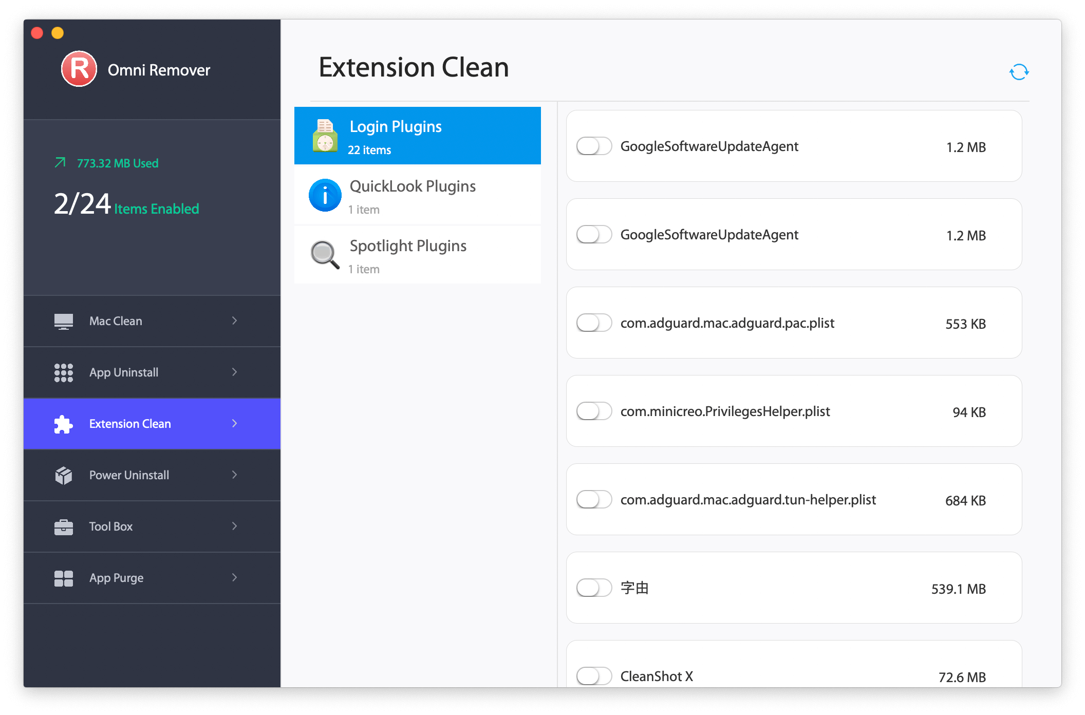 2. 高效清理:Omni Remover 可以快速扫描您的 Mac,查找所有未使用的应用程序和文件,并将它们删除,从而释放磁盘空间和提高 Mac 的性能。